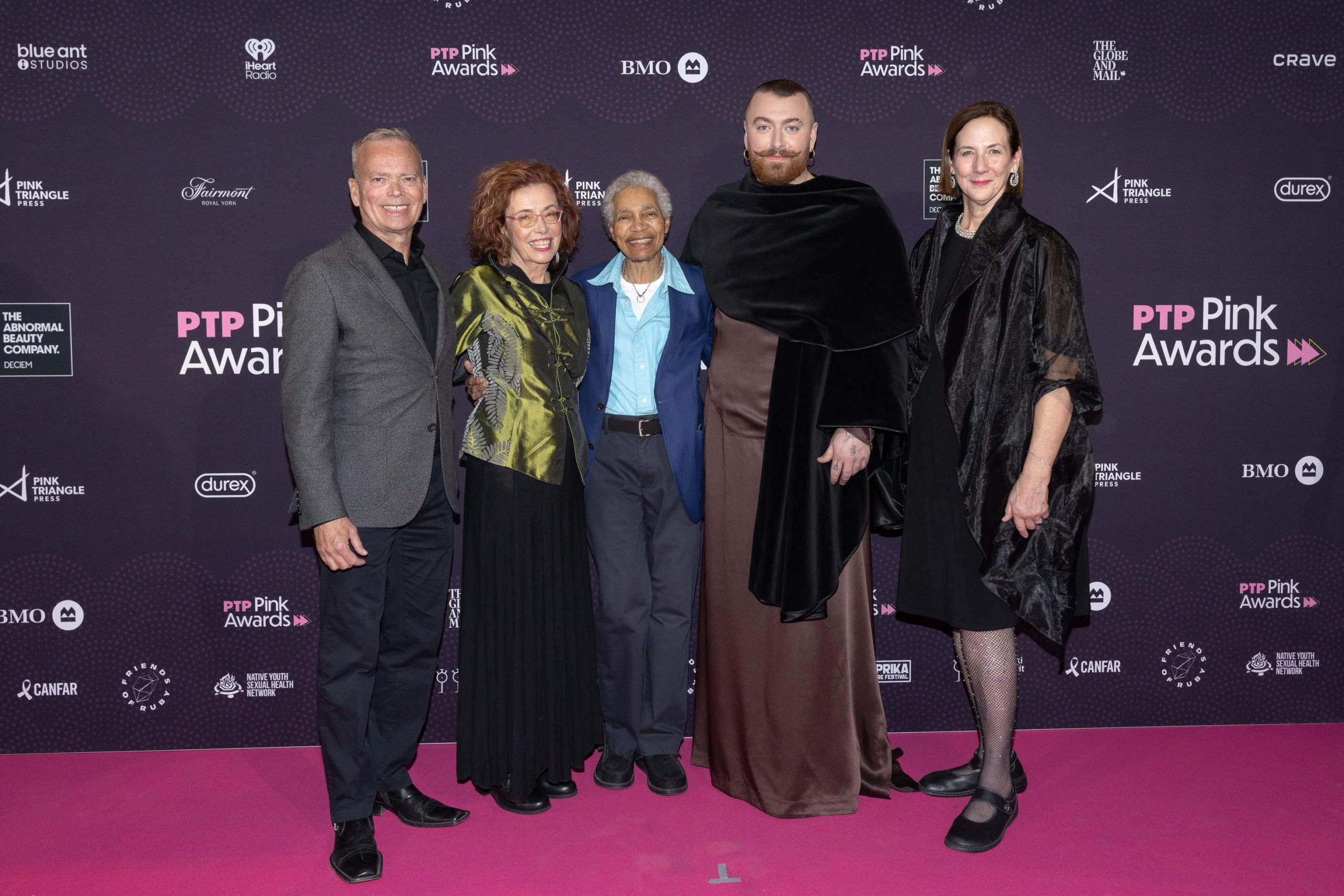 The room buzzed with a veritable who’s who from the queer community including the five Pink Awards Champions Bilal Baig, Carole Pope, Devery Jacobs, Douglas Elliott, and Harper Steele; Pink Carpet host Shannon Burns, style expert and presenter Myles Sexton; Canada’s Drag Race Season 6 participants Eboni La’Belle, Star Doll, and Van Goth; Daniel MacIvor: Vanessa Dunn of Vag Halen; actors Kathleen Munroe, Qasim Khan and Sergio Di Zio; producer Julie Bristow and actor Wendy Crewson; and musical icon Sam Smith and Legacy Award winner Beverly Glenn-Copeland.
